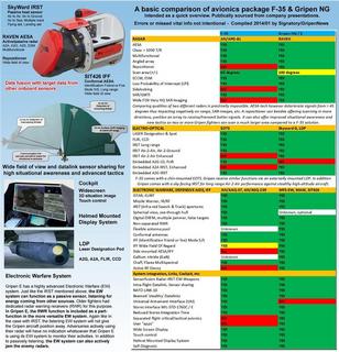 Colega, vc não entendeu o que a tabela mostra, sugiro ler abaixo a respeito do obsoleto EOTS do F-35 e sobre o avançado Skyguard G do Gripen E.